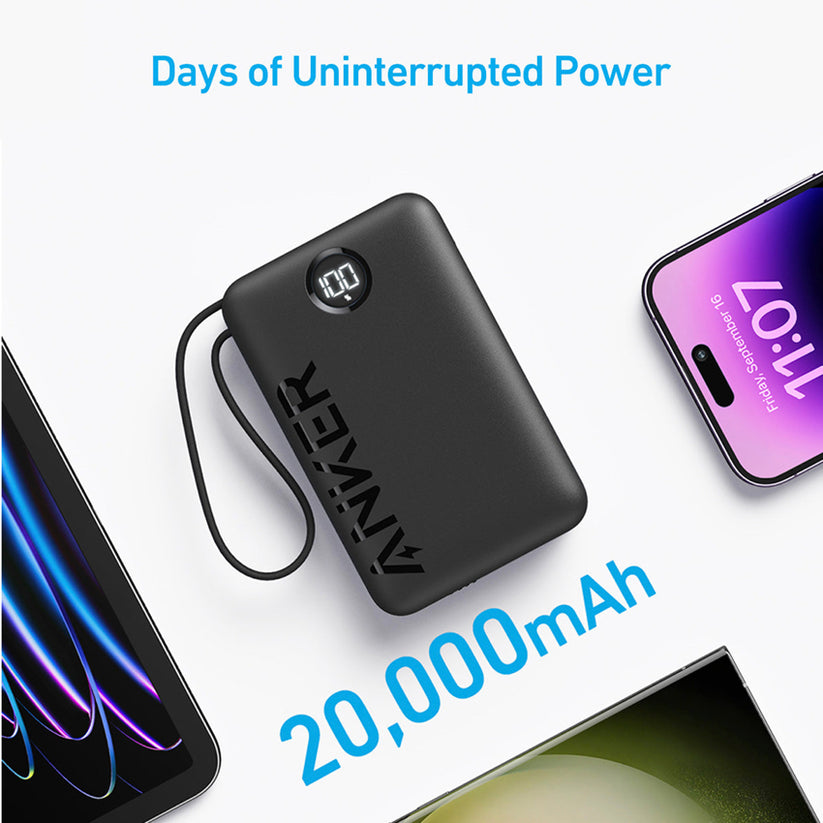 Anker 335 Power Bank [PowerCore 22.5W, Built-In USB-C Cable] - Black