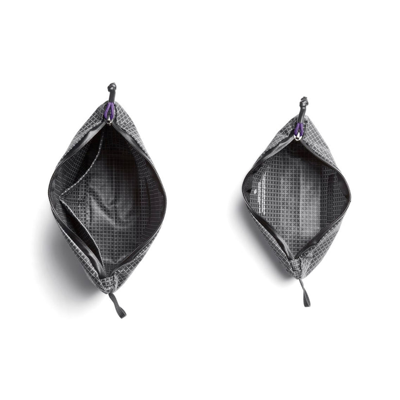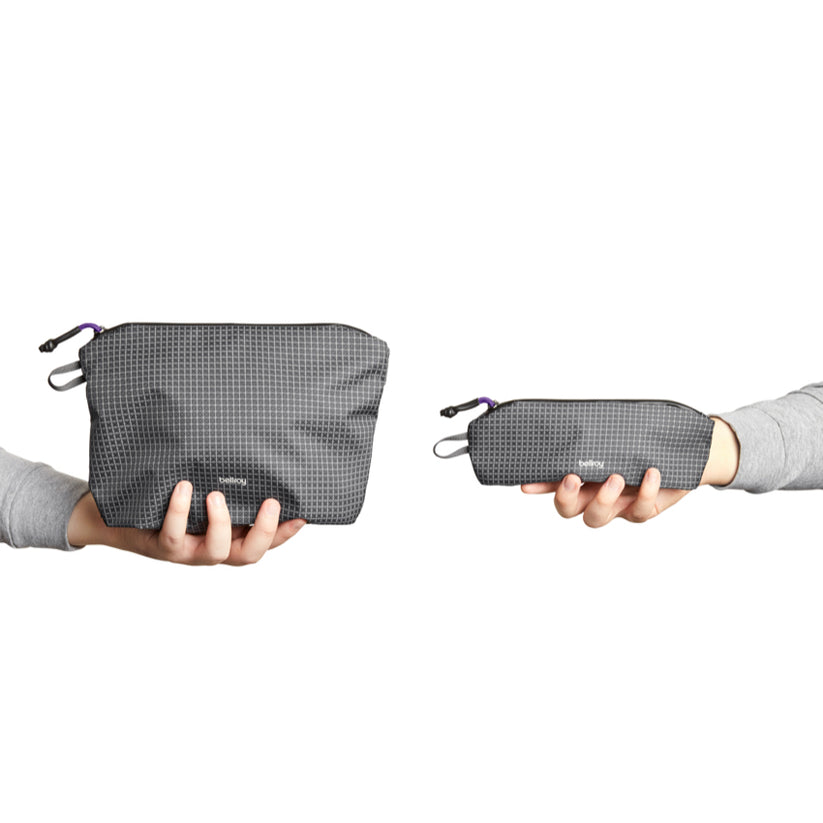 These pouches are made with a recycled ripstop that weighs three times less than our standard fabrics, so they feel light as air.