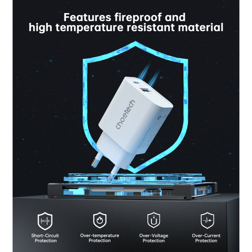 Choetech Dual USB-A and USB-C ports PD 30W TH Plug