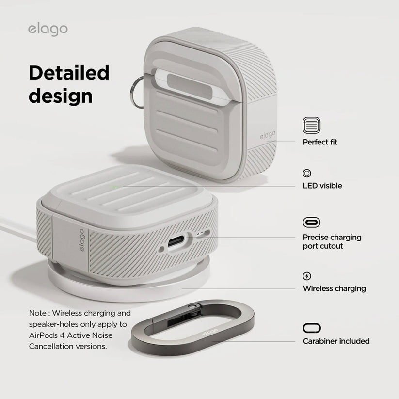 - Durable and shockproof silicone was used to create the Armor Hang Case compatible with Apple AIrPods 4. Silicone is an incredibly versatile material that is safe for humans and pets. The rubber-like material absorbs shocks from drops - perfect for those accidental drops!