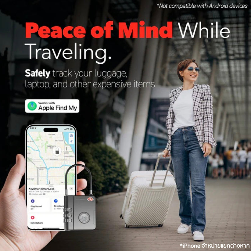 Locate your luggage via GPS with the help of the global Apple Find My network, or use Bluetooth to play a sound and find SmartLock nearby. Not compatible with Android.