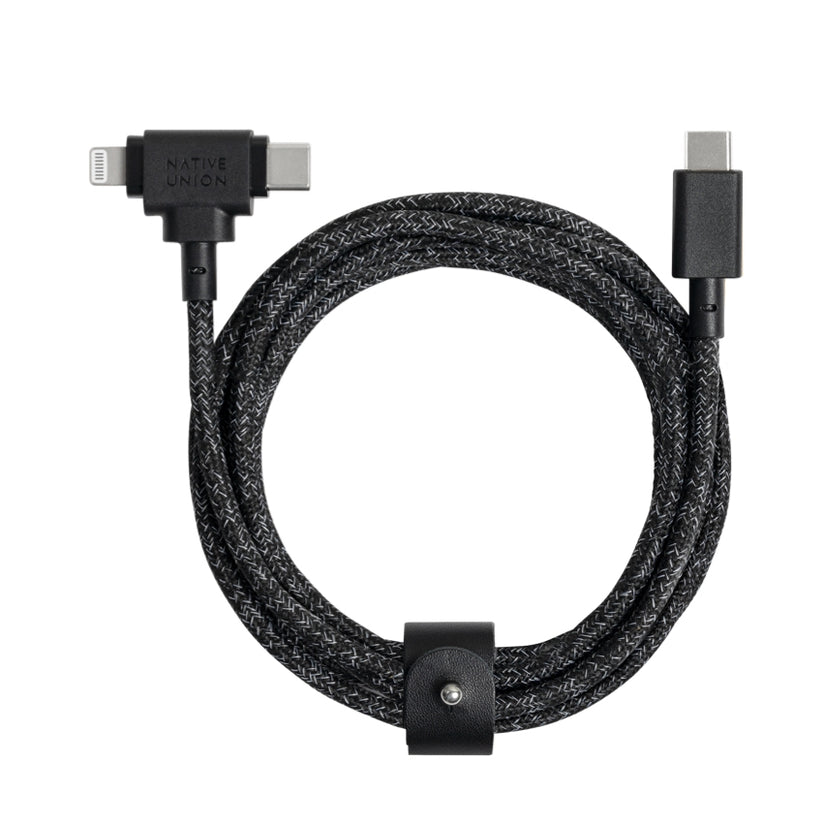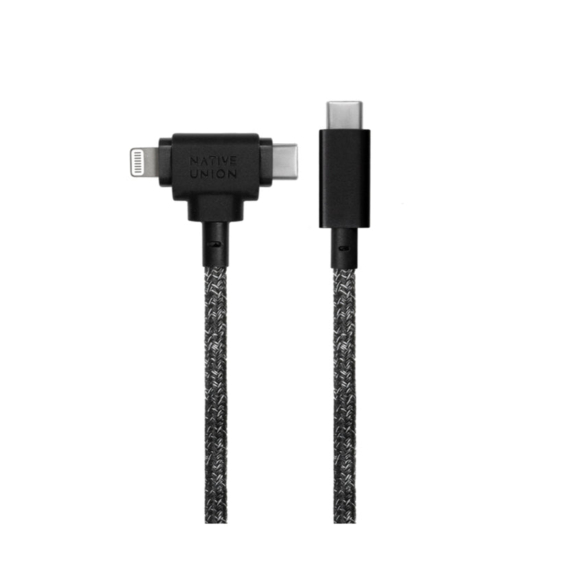 The ultimate cable you've been searching for is finally here. Solve all your power needs with the most sustainable and universal charge ever. Designed for superior convenience and versatility, this unique multi-device cable houses USB-C and Lightning connectors in a single head and is built to the highest standard of durability to withstand even the most active all-day, all-device use.