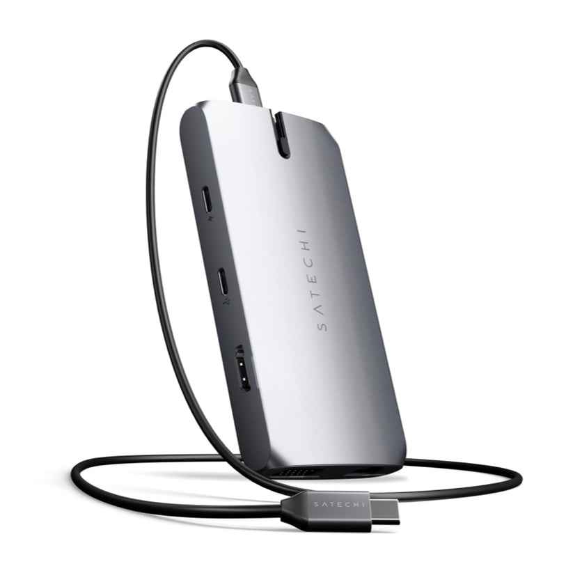 The Satechi USB-C On-the-Go Multiport Adapter helps make productivity portable. Designed for portability and convenience, the Adapter features USB-C PD charging, HDMI and VGA display ports, USB-A data ports, SD card slots, and Gigabit Ethernet, with two detachable USB-C cables - perfect for on-the-go or docked at your desk. With its sleek aluminum finish and plug-and-play design, the On-the-go Multiport Adapter enables you to work at your best wherever you are.