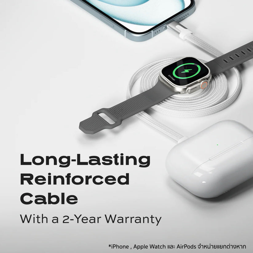 With USB-C on both ends and an integrated Apple Watch charger , MagStack Duo supports versatile charging configurations at up to 60W via cable and 5W via wireless. Connect your MagStack Duo and start charging multiple devices simultaneously - iPhone, Apple Watch , AirPods , and other USB-C devices all at once.