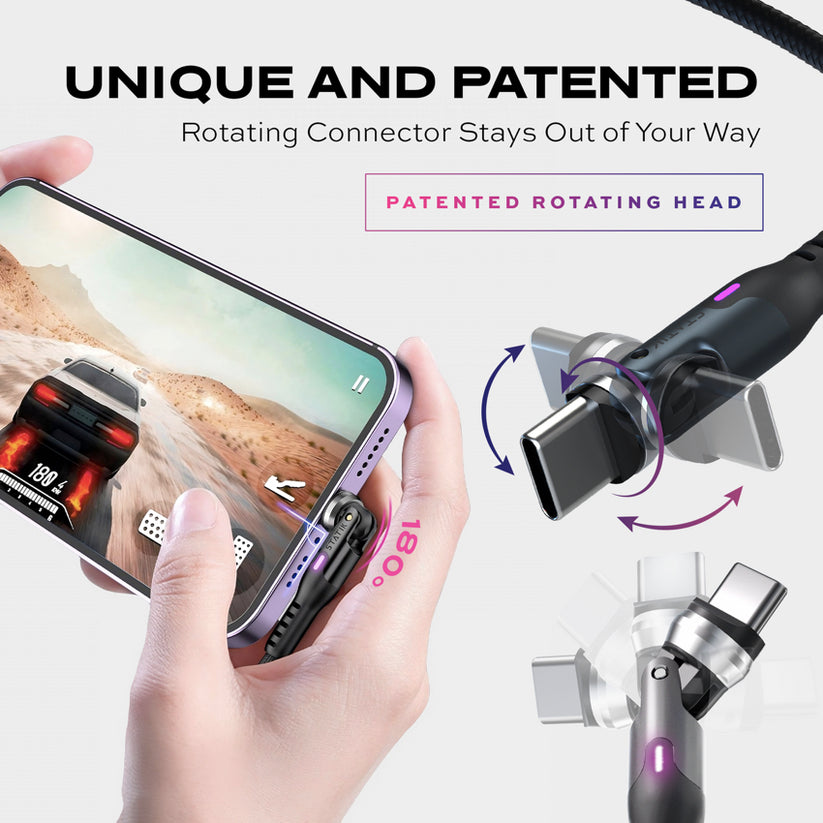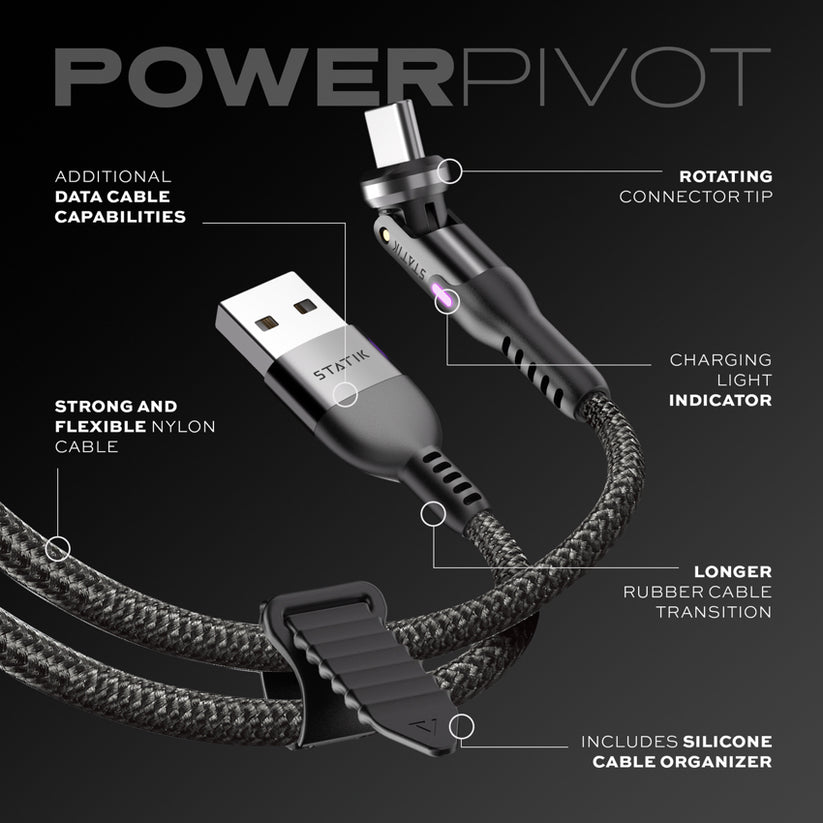 The PowerPivot head has been tested to withstand 40,000 turns, making it 40x more durable than a standard white PVC cable.