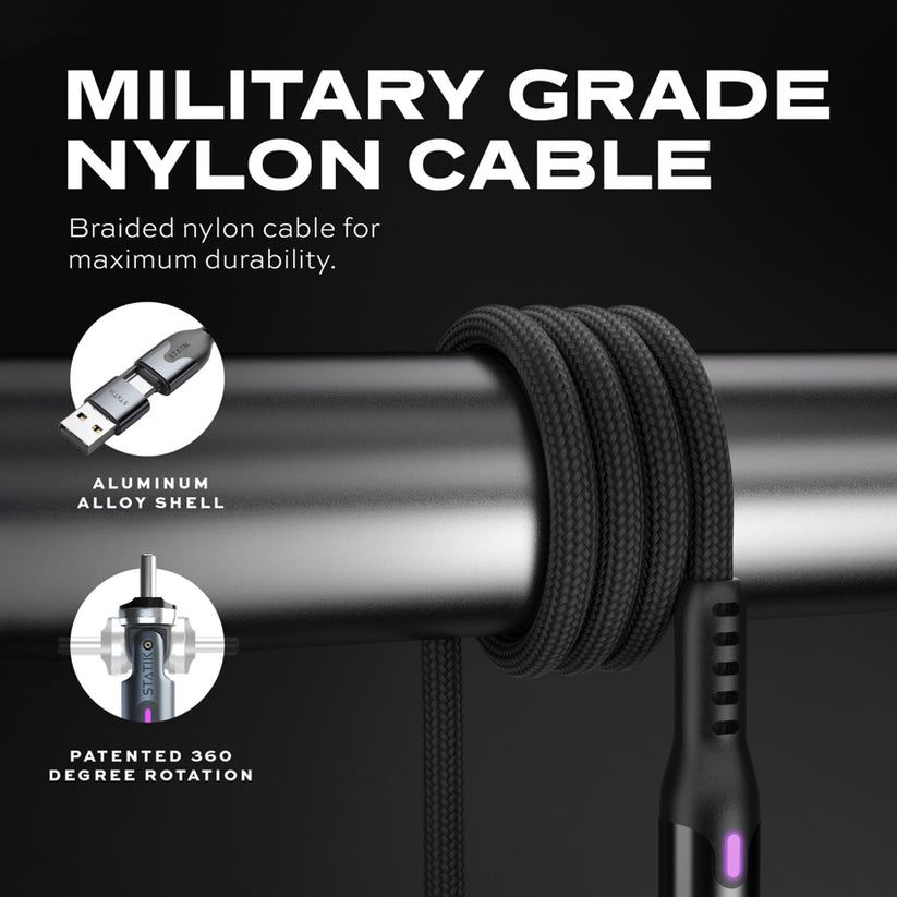 MILITARY GRADE NYLON BRAIDCrafted with a top-tier, abrasion-resistant nylon braided covering that surpasses the durability and strength of typical charging cables. |