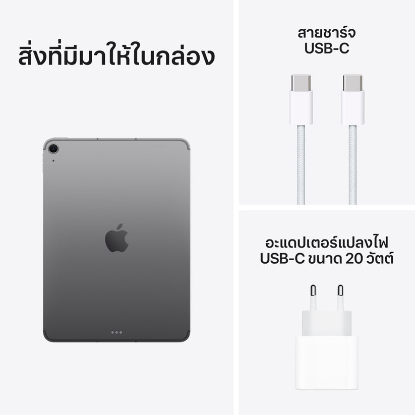 IPADOS + แอป - iPadOS ทำให้ iPad ทั้งมีประสิทธิภาพ ใช้งานง่าย และอเนกประสงค์มากขึ้น โดย iPadOS ช่วยให้คุณใช้งานหลายแอปได้พร้อมกัน ใช้ Apple Pencil เพื่อเขียนลงในช่องข้อความใดก็ได้ด้วยคุณสมบัติการเขียนข้อความ รวมถึงแก้ไขและแชร์รูปภาพ ขณะที่คุณสมบัติอย่างตัวจัดการให้อยู่ตรงกลางจะช่วยให้การทำงานแบบมัลติทาสก์เป็นเรื่องง่ายด้วยแอปที่วางซ้อนกันและปรับขนาดได้ ไปจนถึงการรองรับจอภาพภายนอก นอกจากนี้ iPad Air ยังมาพร้อมแอปที่จำเป็นอย่าง Safari, ข้อความ และ Keynote แถมยังมีอีกเกินล้านแอปที่ออกแบบมาโดยเฉพาะสำหรับ iPad ใน App Store อีกด้วย
