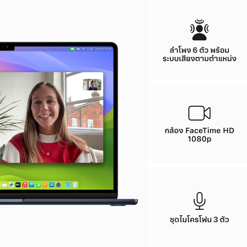 GET CONNECTED—MacBook Air features two Thunderbolt ports, a headphone jack, Wi-Fi 6E, Bluetooth 5.3, and a MagSafe charging port. And connect up to two external displays with the laptop lid closed.