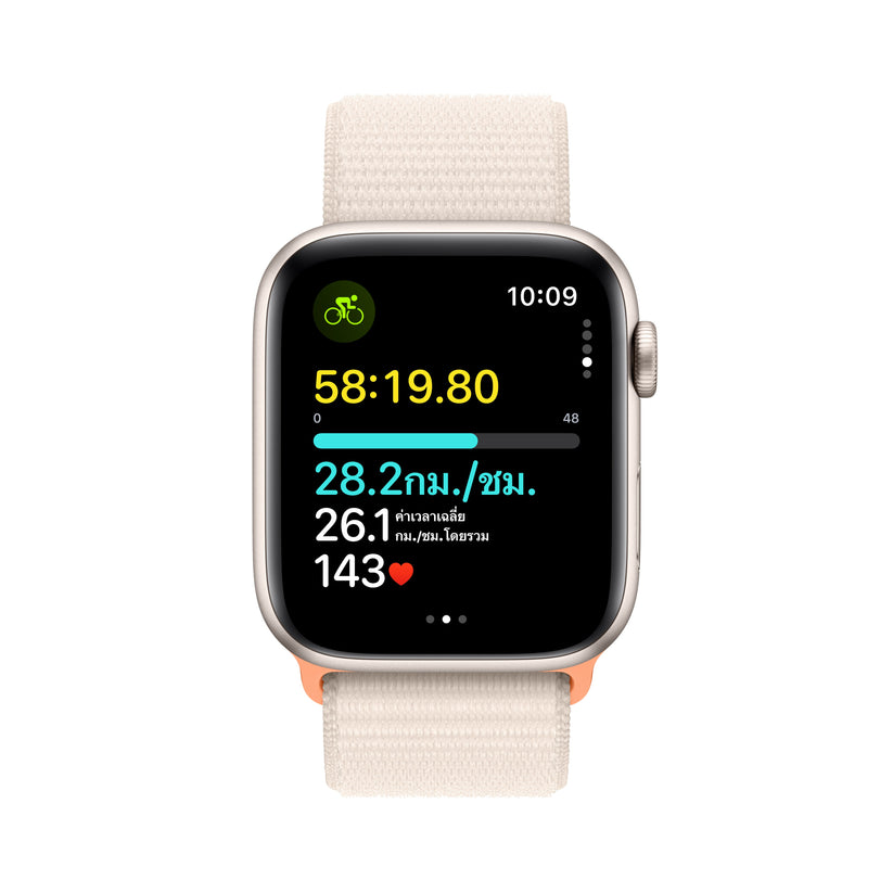 ความเป็นกลางทางคาร์บอน — Apple Watch SE (รุ่นที่ 2) สามารถจับคู่กับสายแบบ Sport Loop ใหม่ล่าสุด เพื่อให้ได้นาฬิกาที่มีความเป็นกลางทางคาร์บอน ดูเพิ่มเติมเกี่ยวกับคำมั่นของ Apple ในด้านสิ่งแวดล้อมที่ apple.com/th/2030