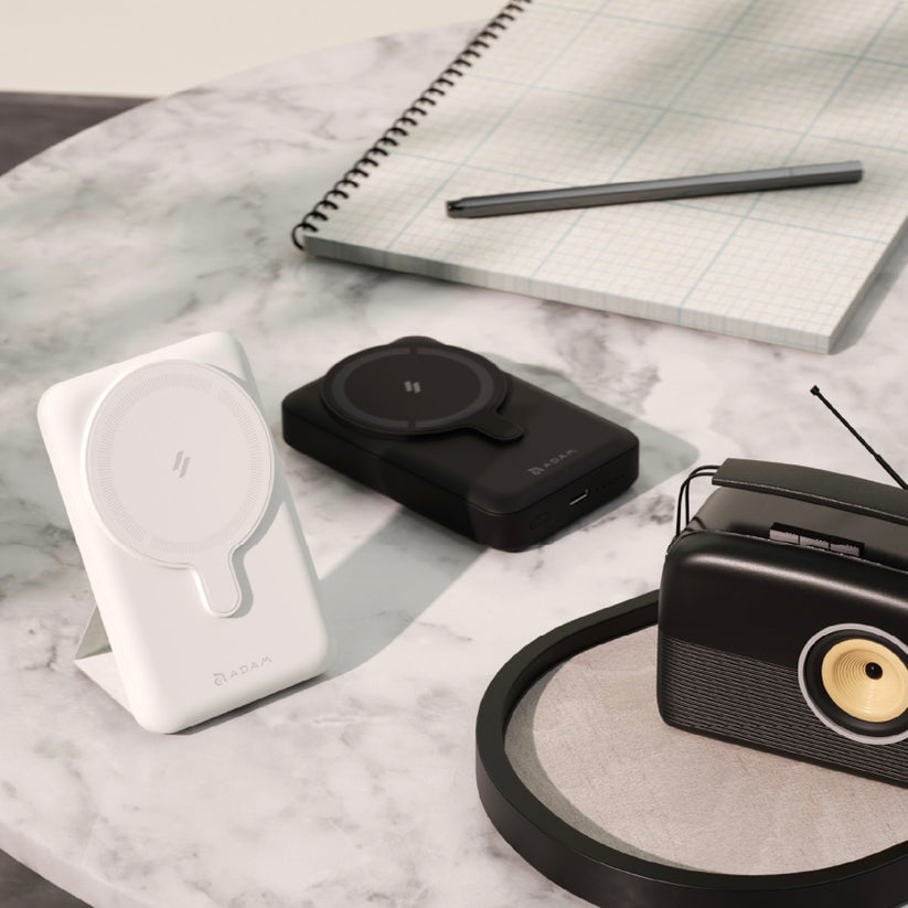 ADAM elements GRAVITY CS10 เป็นแบตเตอรี่สำรองแบบพกพาขนาด 10,000mAh ที่ออกแบบมาเพื่อความสะดวกและมีประสิทธิภาพ มีคุณสมบัติการชาร์จแบบไร้สายด้วยแม่เหล็ก ทำให้สามารถติดและชาร์จอุปกรณ์ที่รองรับได้ง่ายโดยไม่ต้องใช้สายเคเบิล นอกจากนี้แบตเตอรี่สำรองยังมีขาตั้งแบบพับได้ ช่วยให้ผู้ใช้สามารถตั้งอุปกรณ์ขึ้นสำหรับการรับชมแบบแฮนด์ฟรีขณะชาร์จ ขนาดกะทัดรัดและฟังก์ชั่นคู่ในฐานะเครื่องชาร์จและขาตั้งทำให้เป็นอุปกรณ์เสริมที่ไม่เหมือนใครสำหรับผู้ใช้ที่เดินทางซึ่งต้องการให้อุปกรณ์ของตนเองมีพลังงานและเข้าถึงได้