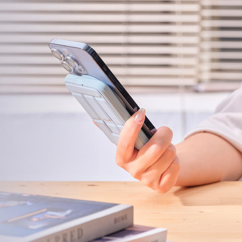 หนึ่งในคุณสมบัติที่โดดเด่นที่สุดของ GRAVITY CS10 คือขาตั้งแบบพับได้ ส่วนเสริมที่เป็นนวัตกรรมนี้จะเปลี่ยนแบตเตอรี่สำรองให้กลายเป็นอุปกรณ์เสริมบนโต๊ะทำงานที่ใช้งานได้จริง ช่วยให้คุณตั้งโทรศัพท์ขึ้นสำหรับการโทรวิดีโอแบบแฮนด์ฟรี การดูสื่อ หรือขณะตรวจสอบการแจ้งเตือน ทั้งหมดนี้ขณะชาร์จแบบไร้สาย