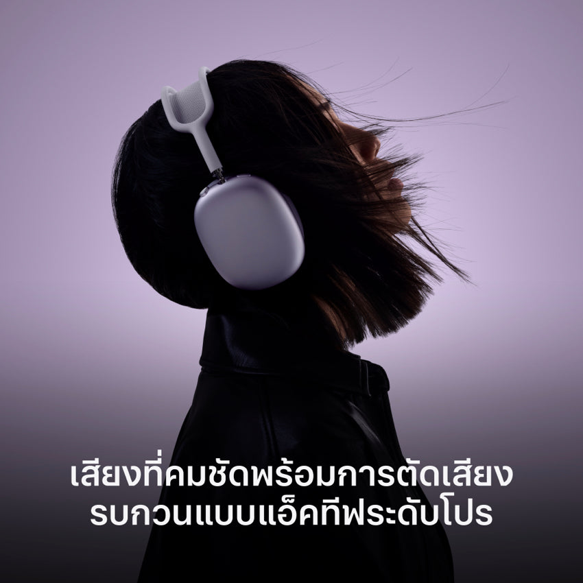 สุดยอดประสบการณ์การฟังจากหูฟังแบบครอบหู — ไดรเวอร์แบบไดนามิกที่ออกแบบโดย Apple ให้เสียงที่คมชัด ระบบเสียงเชิงคำนวณจะผสมผสานดีไซน์อะคูสติกแบบเฉพาะเข้ากับชิป Apple H1 และซอฟต์แวร์เพื่อมอบประสบการณ์การฟังสุดล้ำ