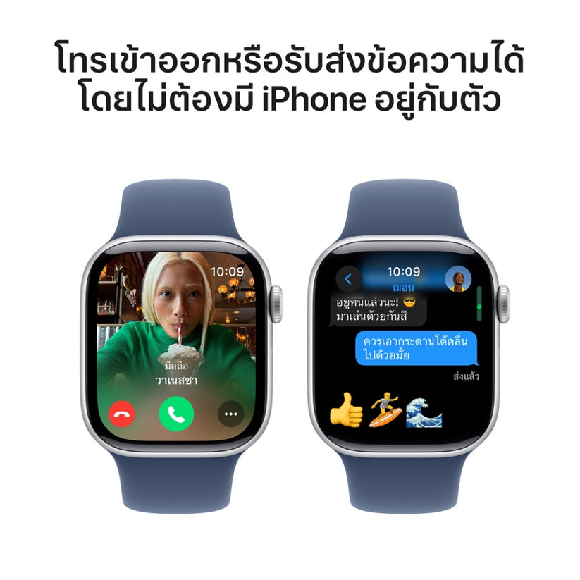 ต่อติดอยู่เสมอ — ไม่ว่าจะส่งข้อความ รับสาย ฟังเพลงและพ็อดคาสท์ ใช้งาน Siri หรือรับการแจ้งเตือนขณะเดินทาง และ Apple Watch Series 10 (รุ่น GPS) ยังใช้งานร่วมกับ iPhone หรือ Wi-Fi เพื่อให้คุณต่อติดกับทุกเรื่องได้เสมอ