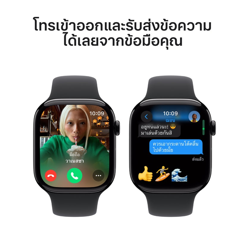 ต่อติดอยู่เสมอ — ไม่ว่าจะส่งข้อความ รับสาย ฟังเพลงและพ็อดคาสท์ ใช้งาน Siri หรือรับการแจ้งเตือนขณะเดินทาง และ Apple Watch Series 10 (รุ่น GPS) ยังใช้งานร่วมกับ iPhone หรือ Wi-Fi เพื่อให้คุณต่อติดกับทุกเรื่องได้เสมอ