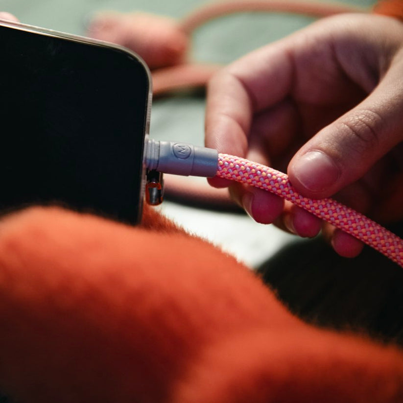 ให้คุณคล้องโทรศัพท์ได้อย่างมีสไตล์ และสามารถชาร์จอุปกรณ์เมื่อใดก็ได้ตามที่คุณต้องการ สายคล้องแบบถักนี้ซ่อนสายเคเบิลที่แข็งแรงเป็นพิเศษซึ่งผ่านการทดสอบการดัดงอกว่า 200,000 ครั้ง