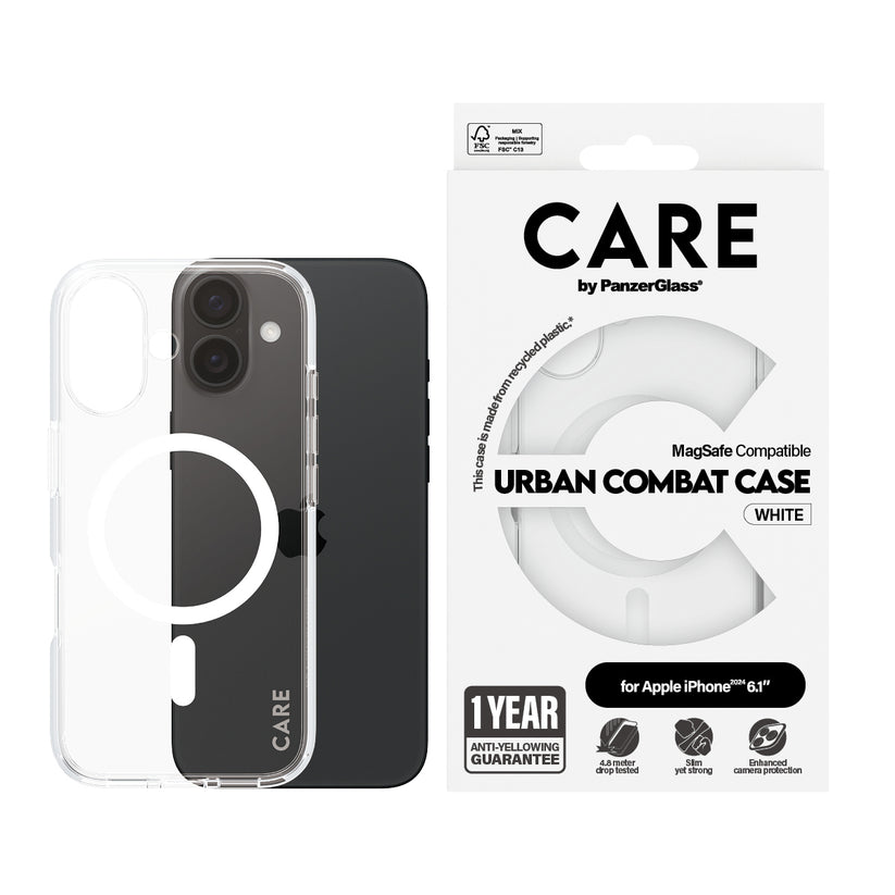 1 x CARE by PanzerGlass Case Flagship White MagSafe for iPhone 16 Plus