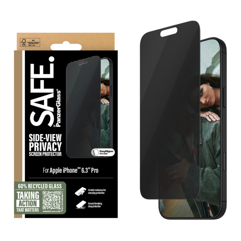• ฟิล์มกันรอยแบบเพิ่มความเป็นส่วนตัว Safe Ultra Wide Fit สำหรับ iPhone 16 Pro จากแบรนด์ SAFE